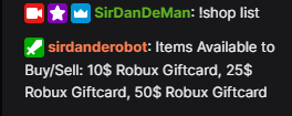 To use the Hrs shop you must be in Dan's Twitch chat. Use the command !shop list to get an idea of what is available.